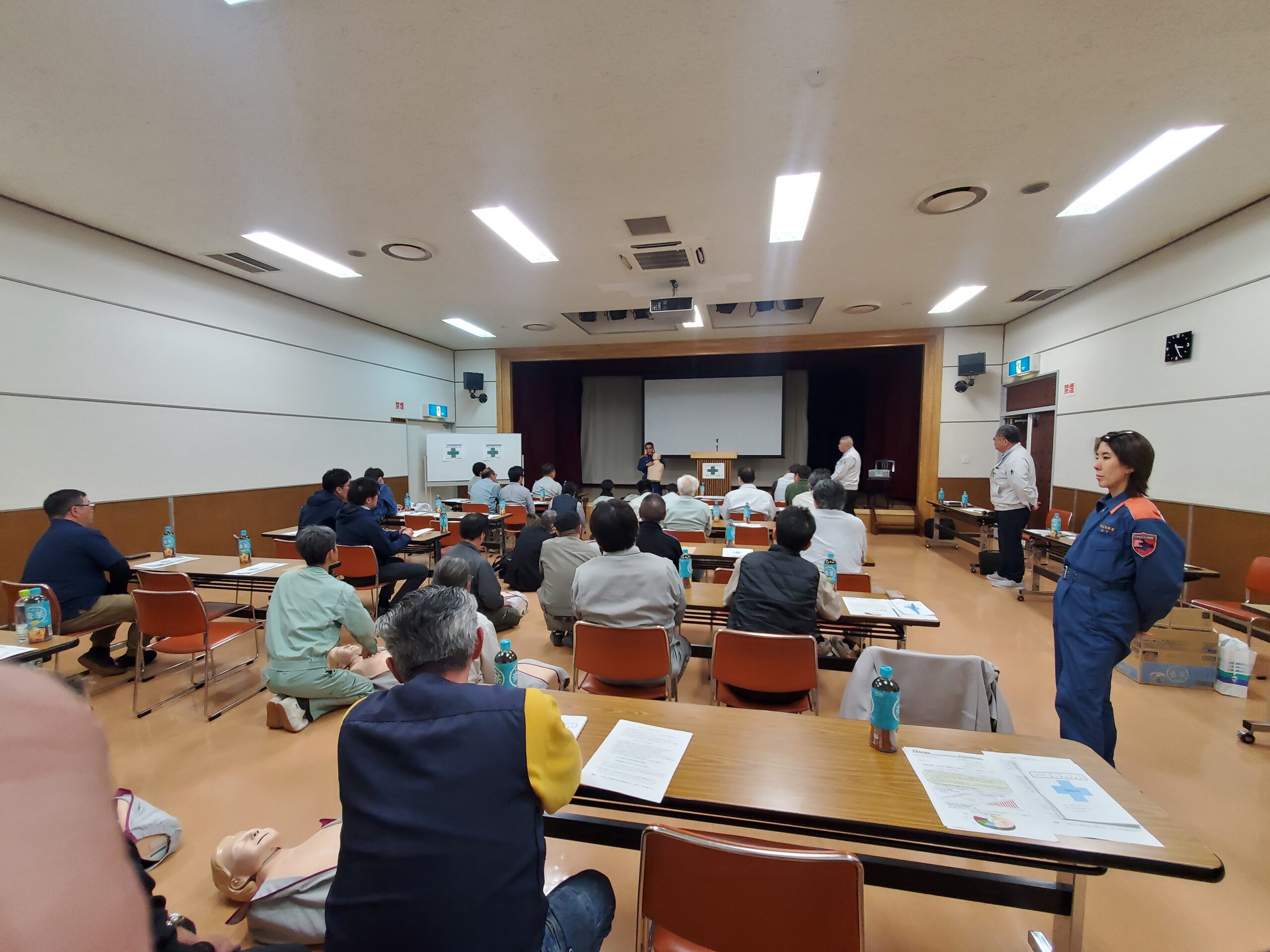 また消防さんには心肺蘇生の講和とAEDの知識と取扱を講話